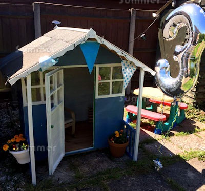 Summer house in situ in the corner of the garden.