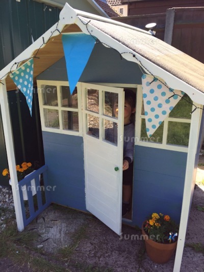 Summer house in situ in the corner of the garden.