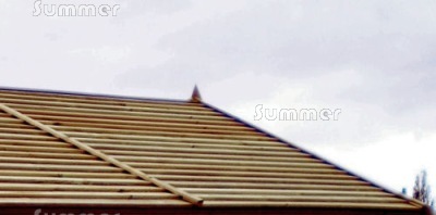 This attractive and durable timber roof is fitted on top of a solid wooden inner roof with a layer of roofing felt. The planed smooth finish ensures that rainwater drains away faster and the timber boards dry quickly, which ensures a longer life for your playhouse. A timber slatted roof is often described as a boarded roof. Occasional treatment is recommended to ensure maximum durability, although a slatted roof with cedar or pressure treated boards will last longer than standard boarding even without treatment. A boarded roof is less vulnerable to wind than most other roof coverings.
