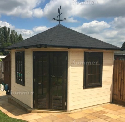 - External summerhouse size measured as a rectangle 7'10"x7'10" (2.4x2.4m), 9'10"x9'10" (3.0x3.0m) or 11'10"x11'10" (3.6x3.6m)